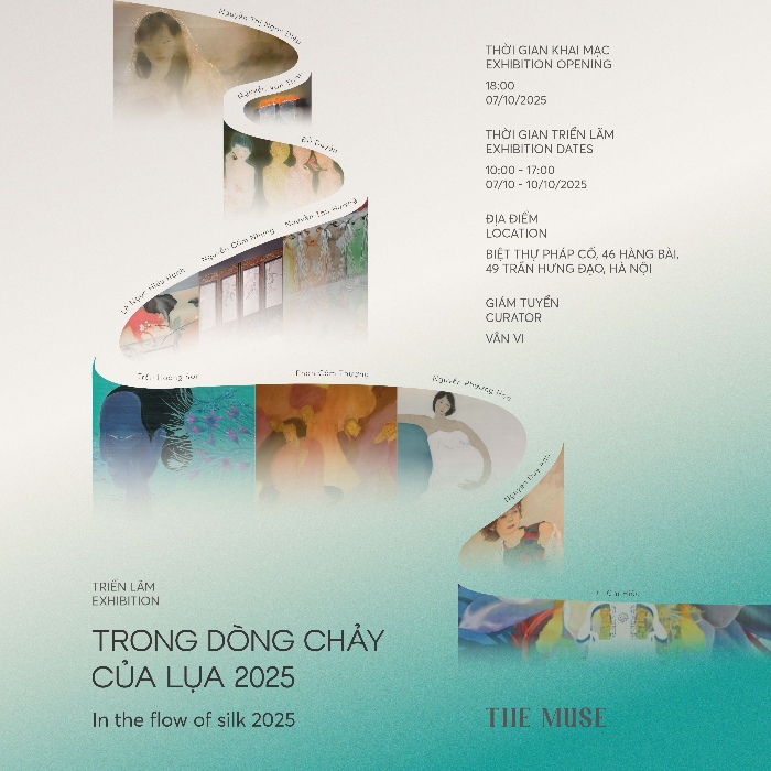 Các họa sĩ sẽ xuất hiện trong triển lãm “Trong dòng chảy của lụa 2025” bao gồm Nguyễn Văn Trinh, Phan Cẩm Thượng, Trần Hoàng Sơn, Nguyễn Thị Ngọc Diệp, Đỗ Thị Duyên, Lê Ngọc Hiếu Hạnh, Nguyễn Duy Anh, Nguyễn Cẩm Nhung, Nguyễn Phương Hoa, Nguyễn Thu Hương, Lưu Chí Hiếu.