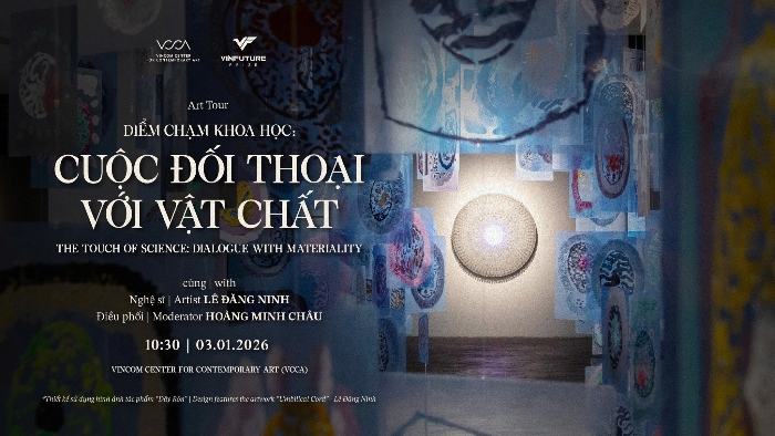 VCCA hân hạnh giới thiệu art tour thứ tư trong khuôn khổ triển lãm “TOẢ V – Điểm chạm Khoa học” | “THE FOLIAGE V – The Touch of Science”, cũng là sự kiện đầu tiên của năm 2026, mang chủ đề “Cuộc Đối thoại với Vật chất”, do nghệ sĩ Lê Đăng Ninh và điều phối nghệ thuật Hoàng Minh Châu dẫn dắt.
