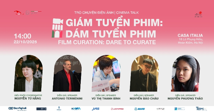 Với sự tham gia của các diễn giả đến từ nhiều nền tảng khác nhau – từ liên hoan phim quốc tế, không gian văn hóa độc lập, tổ chức đào tạo điện ảnh đến cộng đồng queer – buổi trò chuyện hứa hẹn mang đến những góc nhìn đa chiều về công việc giám tuyển và cách nó định hình văn hóa xem phim đương đại.