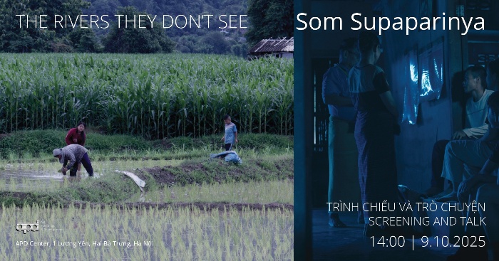 Mời bạn đến tham dự buổi trình chiếu tác phẩm video “The Rivers They Don’t See” của nghệ sĩ Thái Lan Som Supaparinya, một trong những người thực hành thể nghiệm tiên phong về sắp đặt video đa kênh và đồng bộ hình ảnh tại khu vực. Cô cũng là một trong các nghệ sĩ tham gia “Riverscapes IN FLUX” / “Phong cảnh sông nước đang biến đổi” (2012 — 2013), dự án nghệ thuật văn hóa sinh thái được khởi xướng và tổ chức bởi Viện Goethe Việt Nam. Dự án có sự tham gia của các nghệ sĩ và curator từ Việt Nam, Thái Lan, Campuchia, Myanmar, Indonesia và Philippines; nghiên cứu thực địa và phản ánh những thay đổi về sinh thái cũng như kinh tế – xã hội và văn hóa mà những dòng sông tại các nước này đang trải qua.