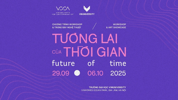 Từ ngày 29/09 đến ngày 06/10/2025, Trung tâm Nghệ thuật đương đại Vincom (VCCA) và Trường Đại học VinUniversity phối hợp tổ chức chương trình Workshop & Trưng bày nghệ thuật “Tương lai của thời gian | Future of Time 2025”.