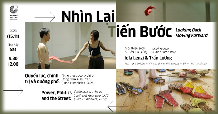 Goethe-Institut TP.HCM hân hạnh mời bạn tham dự Nhìn lại, Tiến bước / Looking Back, Moving Forward — buổi ra mắt sách & thảo luận với iola Lenzi, nhà sử học kiêm giám tuyển hiện đang sống và làm việc tại Singapore, cùng nghệ sĩ–giám tuyển Trần Lương, xoay quanh ấn phẩm mới phát hành “Power, Politics and the Street: Contemporary Art in Southeast Asia after 1970” (Lund Humphries, 2024).