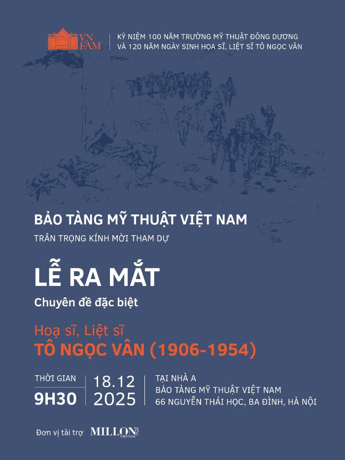 Nhân dịp kỷ niệm 100 năm Trường Cao đẳng Mỹ thuật Đông Dương (1925 – 2025), Bảo tàng Mỹ thuật Việt Nam ra mắt Không gian trưng bày Chuyên đề đặc biệt nhằm tôn vinh những tác giả và tác phẩm tiêu biểu của mỹ thuật Việt Nam. Trong lần ra mắt này, lần đầu tiên công chúng được tiếp cận một chuyên đề riêng về Họa sĩ, Liệt sĩ Tô Ngọc Vân (1906 – 1954) – một trong những danh họa tiêu biểu nhất của nền mỹ thuật hiện đại và mỹ thuật cách mạng Việt Nam.