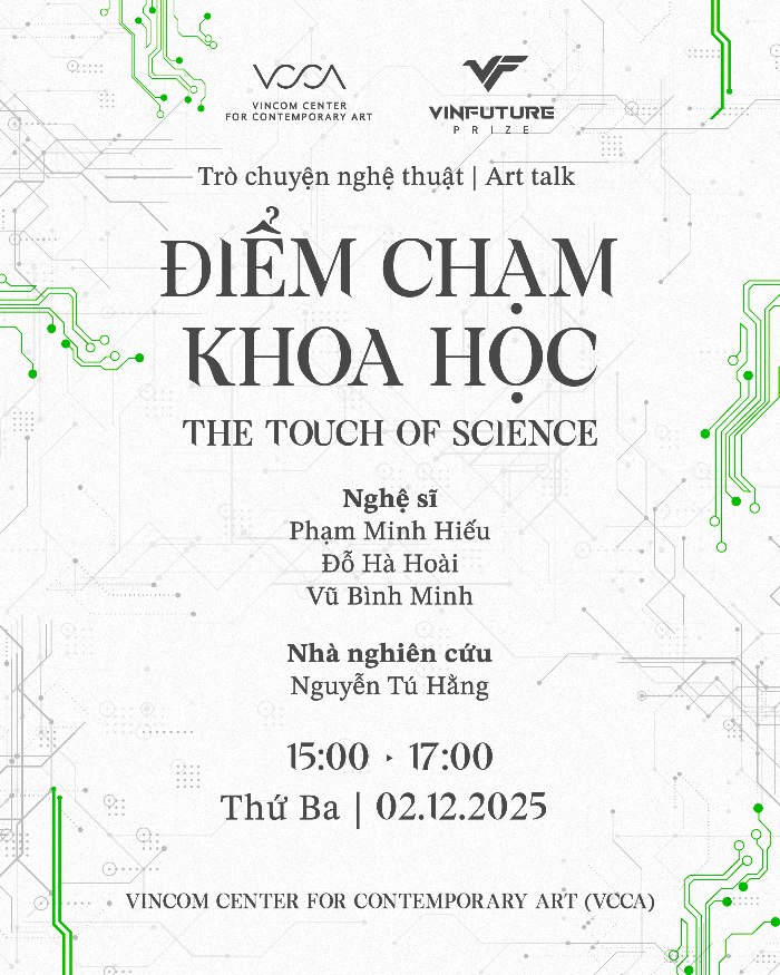 Buổi trò chuyện sẽ là dịp để công chúng khán giả lắng nghe chia sẻ trực tiếp từ các nghệ sĩ về những câu chuyện đằng sau tác phẩm, từ nguồn cảm hứng, cách tiếp cận chủ đề cho đến cấu trúc, vật liệu, những thử nghiệm mới trong việc đưa khoa học trở thành chất liệu của trải nghiệm thẩm mỹ…, và góc nhìn đặc biệt từ những người làm nghiên cứu để mở rộng sự giao thoa trong hướng tiếp cận hai lĩnh vực này.