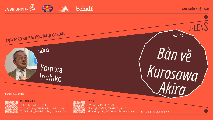 Trung tâm Giao lưu Văn hóa Nhật Bản tại Việt Nam (JFVN) và các đối tác trân trọng tổ chức buổi bài giảng công chúng đặc biệt “Bàn về Kurosawa Akira”. Chương trình thuộc chuỗi J-Lens: Góc nhìn Nhật Bản, dưới sự dẫn dắt của học giả tiếng tăm Yomota Inuhiko.